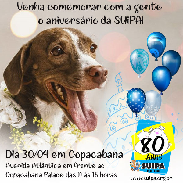 No dia 30 de Abril, em Copacabana, na Avenida Atlântica em frente ao Copacabana Palace das 11 às 16 horas realizaremos um evento para comemorar os 80 anos da SUIPA.