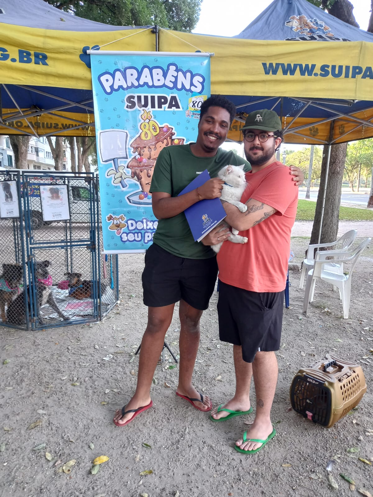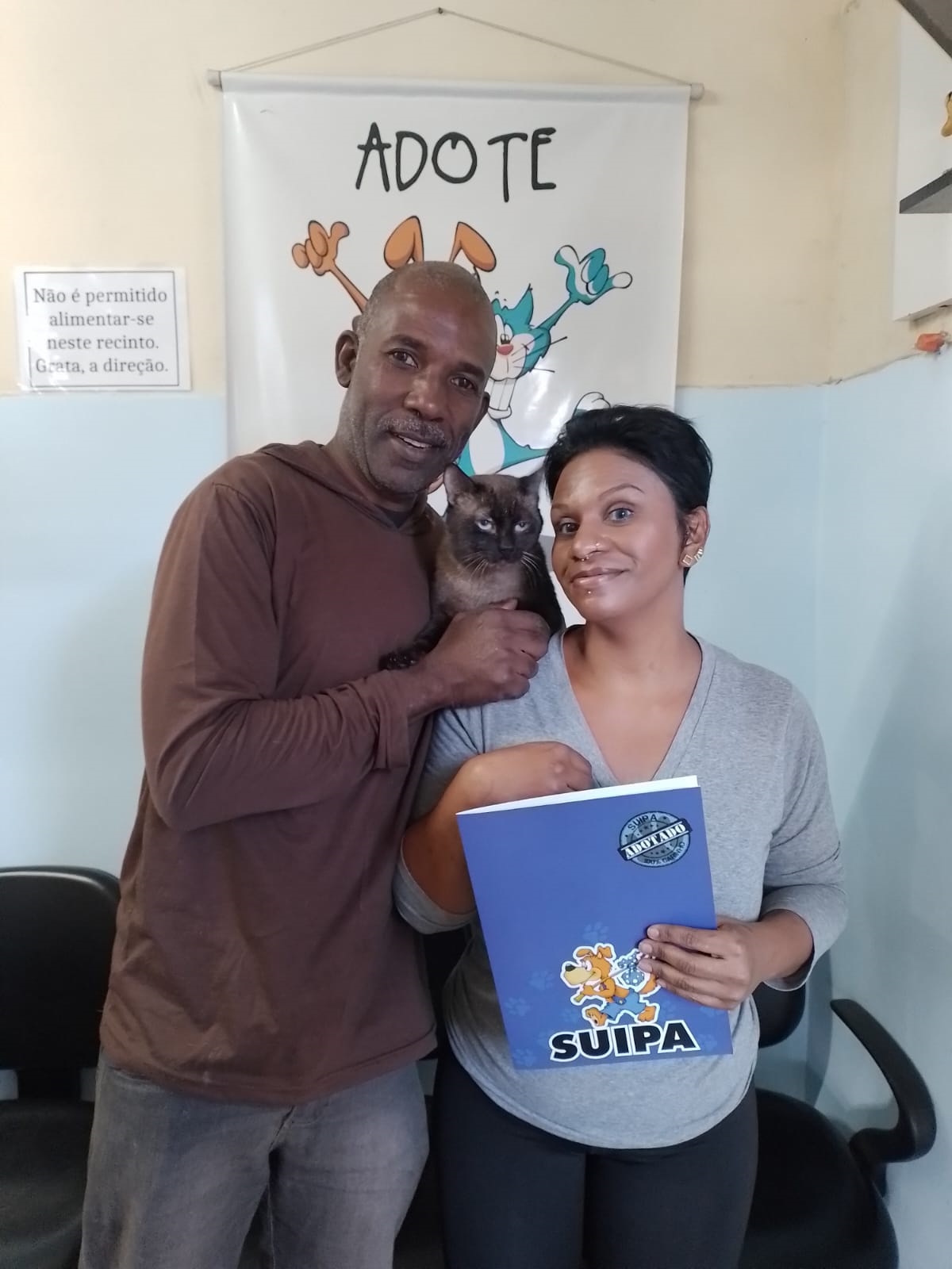 Os felinos Dulce, Martin e Murilo sairam agarrados aos seus adotantes.