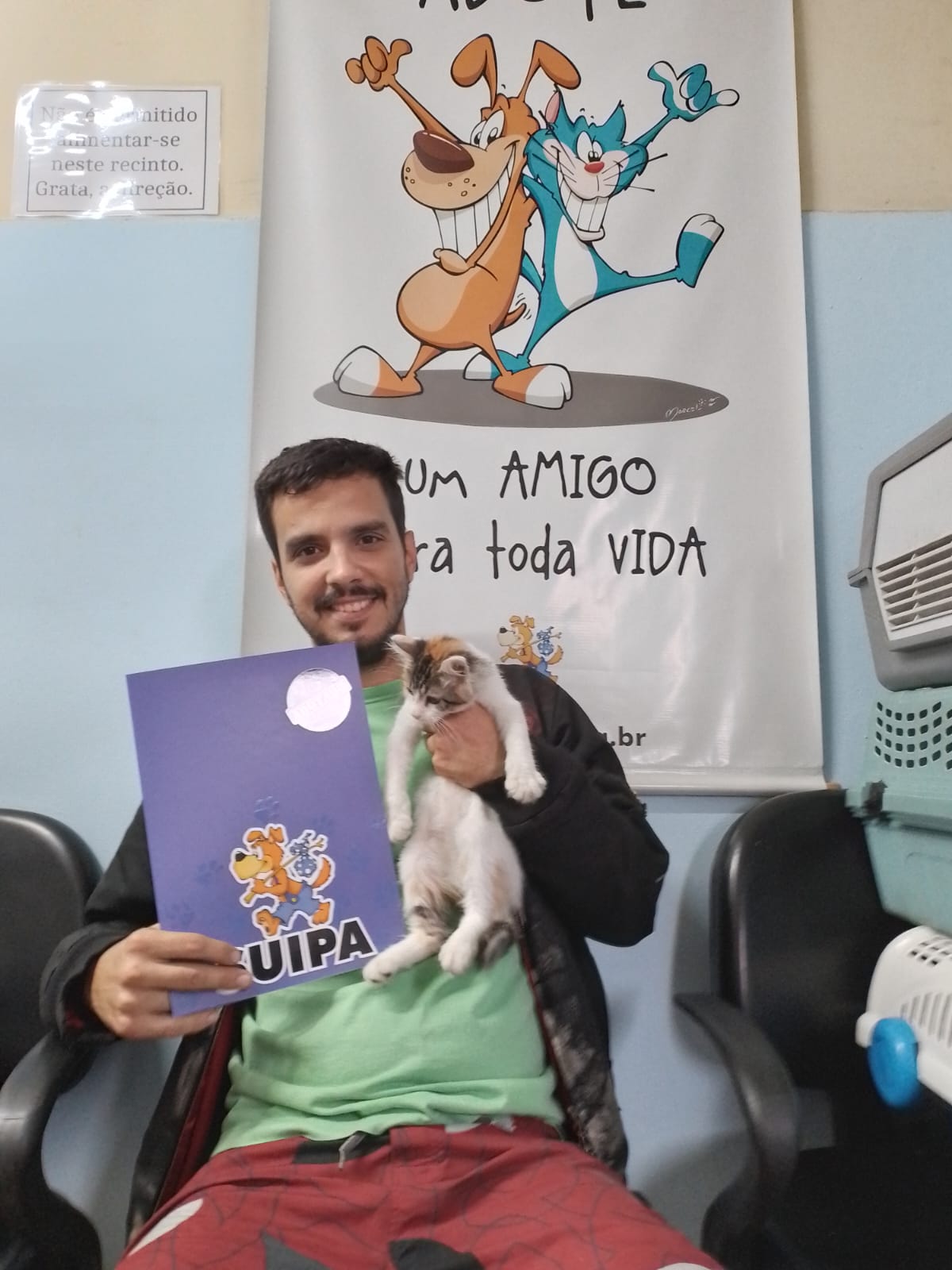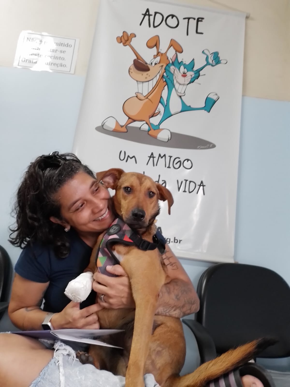 A Pilar, foto incrível, sentadinha tranquila com seus adotantes.