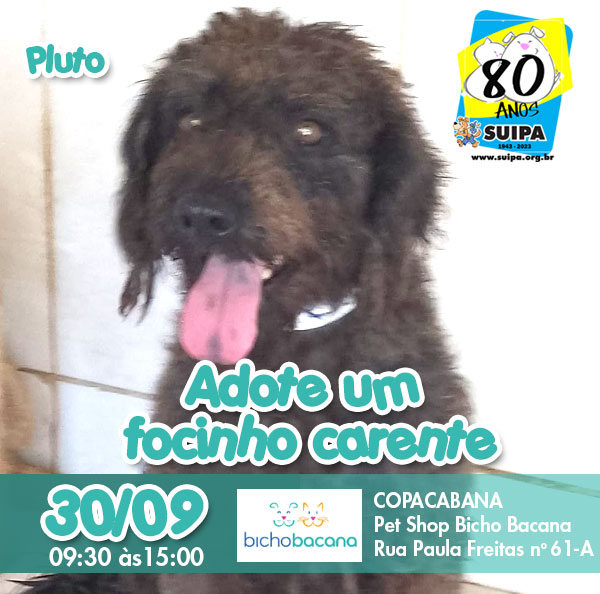 Dia 30/09 nosso evento “Adote um focinho carente” estará na #bichobacanaoficial em Copacabana. Que coisa boa!!! Estaremos lá com a lojinha da SUIPA e com muita alegria para encontrá-los.