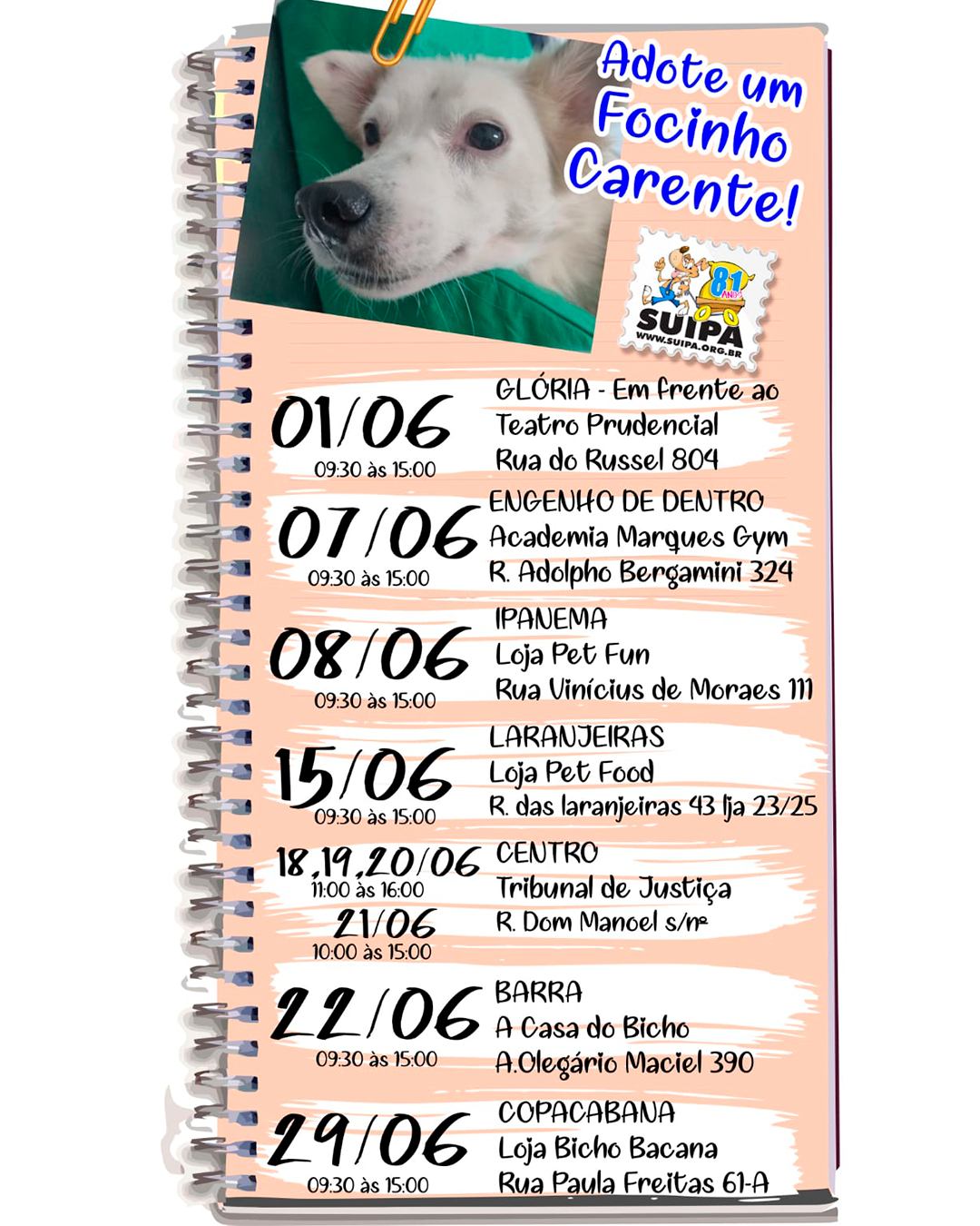 Nosso calendário de Junho está LOTADO de eventos! Não percam a oportunidade de participar! Junte-se a nós e faça um bichinho feliz ao torná-lo o novo membro da sua família. 🐾