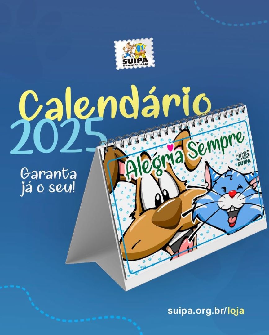 ![]() Você pode adquirir o calendário na nossa lojinha online www.suipa.org.br/loja, em nossa sede ou em nossos eventos de adoção que realizamos aos sábados!#2025 #SUIPA #SUIPAViva |