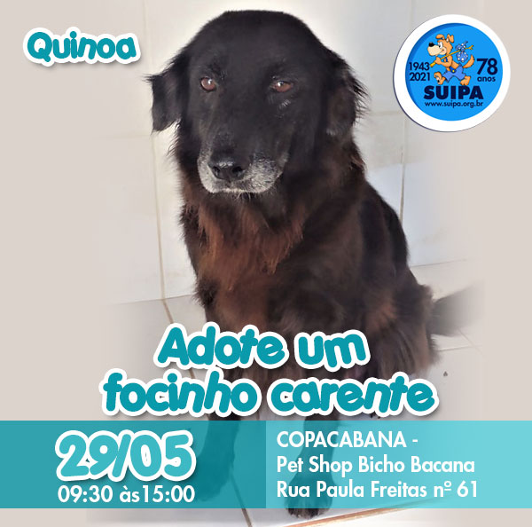 Pessoal, conseguimos!!! Dia 29/05, nosso evento “Adote um focinho carente” na #bichobacanaoficial em Copacabana foi confirmado. Que coisa boa!!!