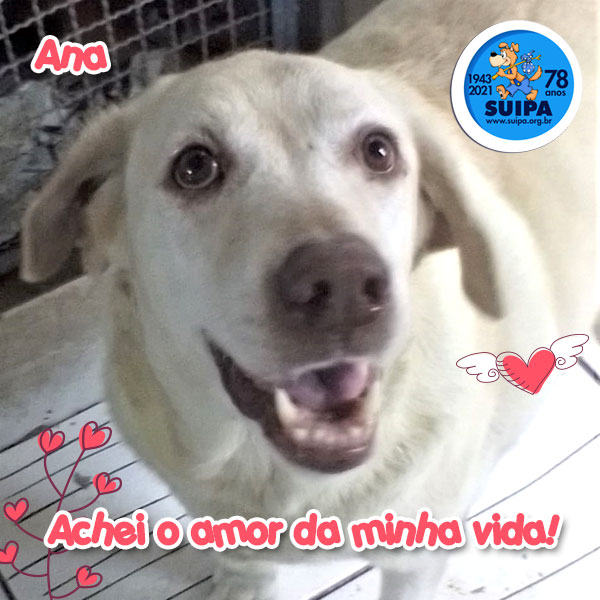 | Esse sorriso, ela carrega para todo lado! SUIPA - 28/7/2021 -SUIPA “Brincando de esconde, esconde...eu achei o amor da minha vida! Me apaixonei...não consegui conter a minha felicidade. Mas como faço se eu achei o amor da minha vida, mas ele ainda não sabe que eu também sou o amor da vida dele?” Esta é a Ana, uma labralata que vive se apaixonando e conquistando cada um que ela encontra. Esse sorriso, ela carrega para todo lado. É incrível a capacidade de alguns suipanos de transformar a sua perda em amor para dar. Quem sabe ela realmente vai achar o amor da vida dela por estes dias! Vamos ficar apaixonados por este momento. Vocês podem conhecer alguns dos suipanos que se encontram para adoção através do nosso site em www.suipa.org.br/adocao. Adote um Focinho Carente é um programa permanente realizado pela SUIPA.