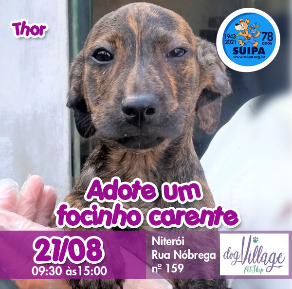 O Thor, a Amora, a Sarah, a Lara, as gatinhas Lili e Anita aguardam a chance de serem presenteados com uma nova família no nosso próximo “Adote um focinho carente” que, neste sábado dia 21/08 será em Niterói, no Pet Shop Dog Village, na rua da Nóbrega nº159 das 9:30 às 15:00hs.