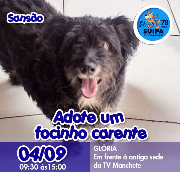 Neste sábado, dia 04/09, vamos estar em frente a antiga TV manchete das 9:30 às 15:00hs com os suipanos para adoção, a lojinha da SUIPA e o bazarcão.