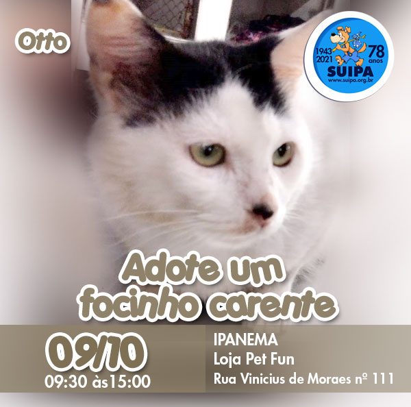 Eles estarão no sábado dia 09/10 no nosso “Adote um Focinho Carente” em Ipanema na Loja PET FUN na Rua Vinícius de Moraes nº 111 das 9:30 às 15:00hs.