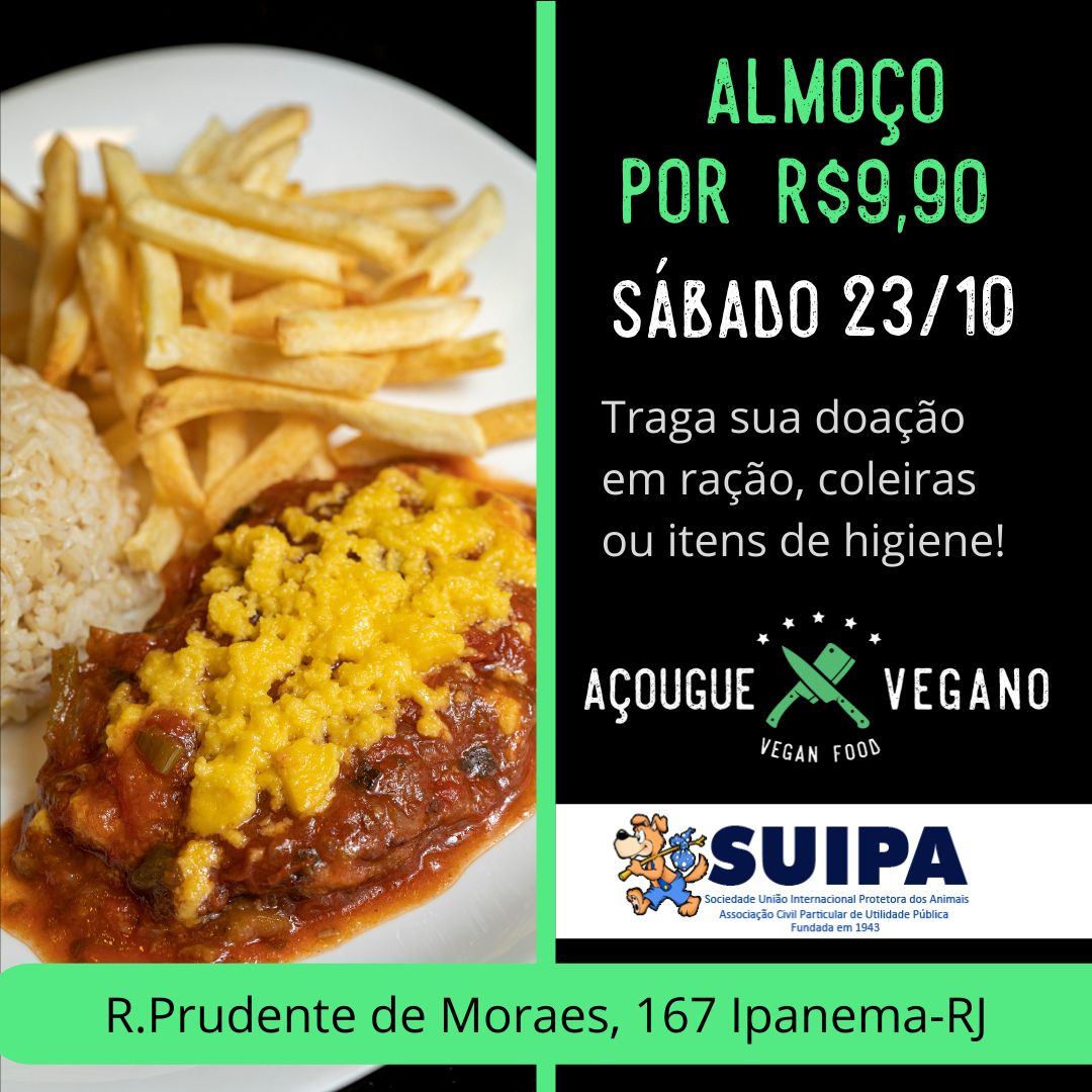 O Açougue Vegano realizará um Almoço Solidário para arrecadação de doações para a SUIPA no dia 23/10.