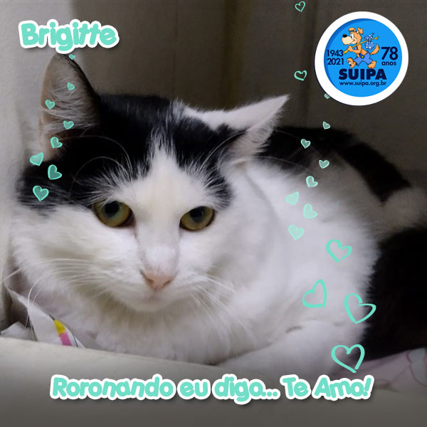 | Conheçam a Brigitte esta gatinha muito charmosa! SUIPA - 29/10/2021 -SUIPA Nosso evento do dia 30/10 infelizmente foi cancelado, mas vocês podem conhecer a Brigitte, esta gatinha muito charmosa e os suipanos na galeria de adoção do nosso site em www.suipa.org.br/adocao ou então ir até a nossa sede. Vocês precisam ver a fofura do gatinho Vicente, a nossa cotozinha Mary Hellen e a doçura de seu sorriso. Muitos outros suipanos aguardam felizes a chance de serem adotados. Tenham certeza de que eles têm um amor imenso guardado, esperando o momento de desabrochar. O Adote um Focinho Carente é um programa permanente realizado pela SUIPA em sua sede, no nosso site e em eventos itinerantes. SEDE: Segunda a Sexta - 8:00 às 13:00
