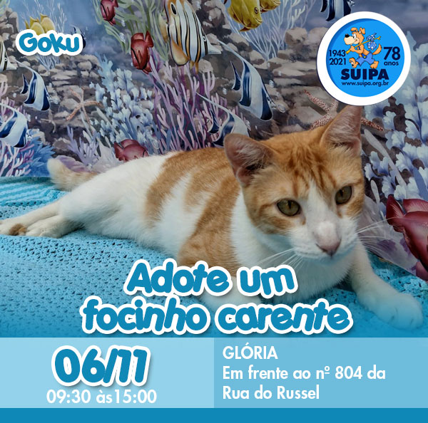 | Dia 06/11 na Glória - Adote um Focinho Carente SUIPA - 6/11/2021 -SUIPA Os felinos Goku e Brigitte e os filhotes Bibi, Kira e Frajola estarão hoje no nosso “Adote um focinho Carente” que acontecerá na Glória. Estar com vocês é sempre muito bom e para os suipanos, cada visita, representa uma chance. Eles se enchem de esperança de que poderão ter uma casa só para eles. Quem puder levar sua doação seja de potinhos de sorvete, material de limpeza, bacias, ração, latinhas de patê para cães e gatos dentre outras será uma grande ajuda. Também estamos precisando muito, mas muito mesmo de medicamentos. Seguem uma lista de alguns deles: