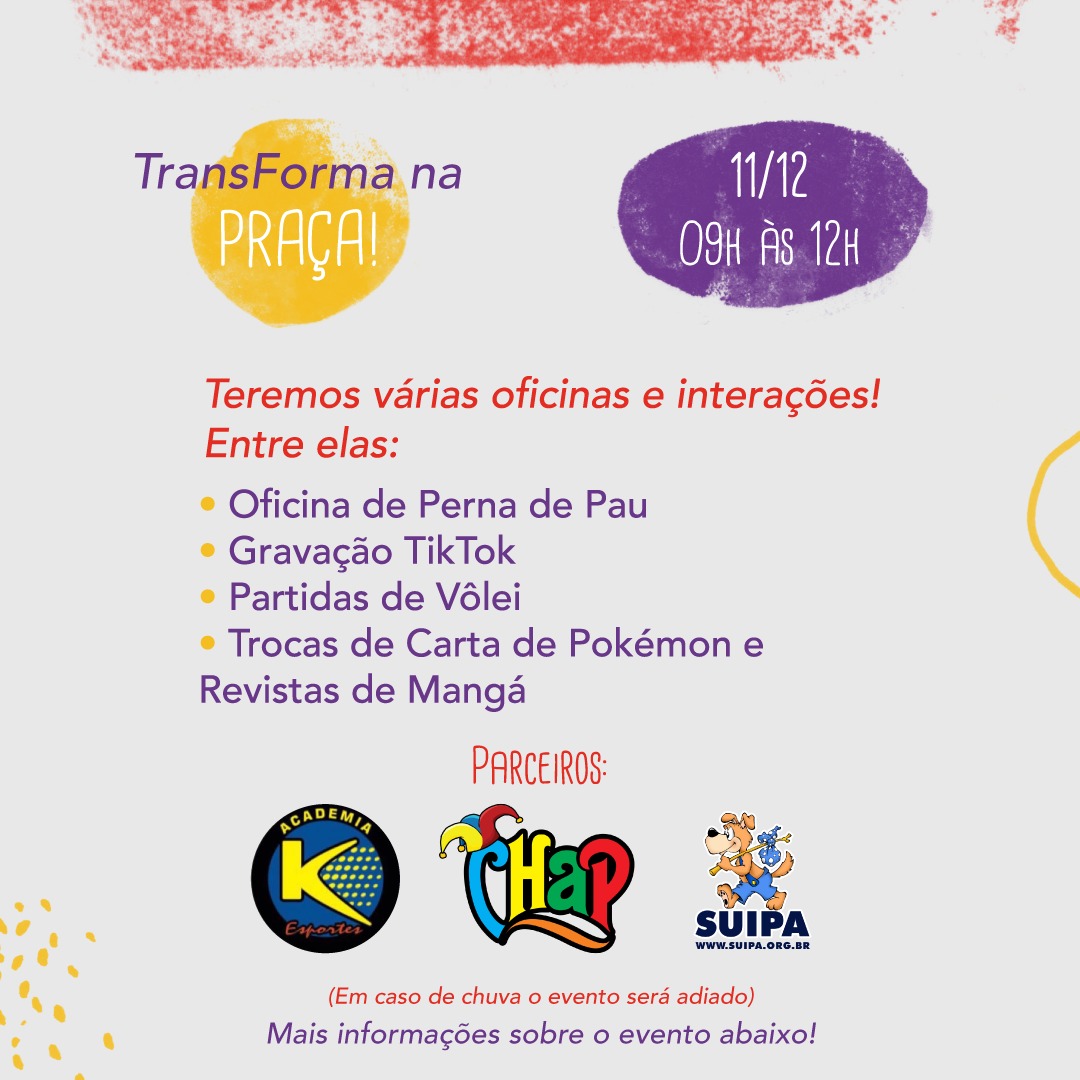 TransForma Escola convida você para um encontro super especial na Praça Miguel Osório!