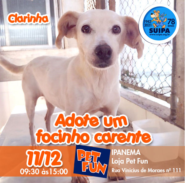 Nosso focinho de sábado, dia 11/12, será na PET FUN em Ipanema. Vamos estar lá com os suipanos para adoção e a lojinha da SUIPA torcendo para que todos sejam adotados!