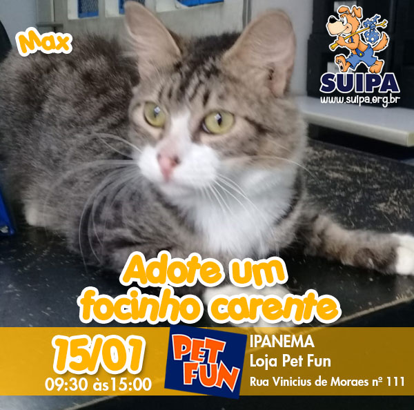 Dia 15/01 em Ipanema, na Loja Pet Fun na rua Vinícius de Moraes nº 111 - das 9:30 às 15:00hs