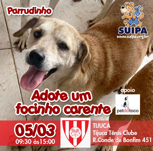 Nosso “Adote um Focinho Carente” pela primeira vez estará na Tijuca, no Tijuca Tênis Clube!