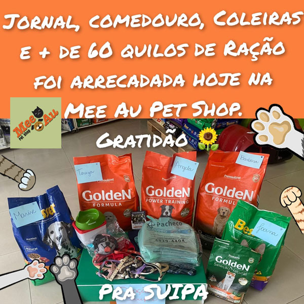 A Mee & Au realizou uma campanha para arrecadação de doações para a SUIPA neste fim de semana. Foram mais de 60 quilos de ração, comedouros e coleiras.