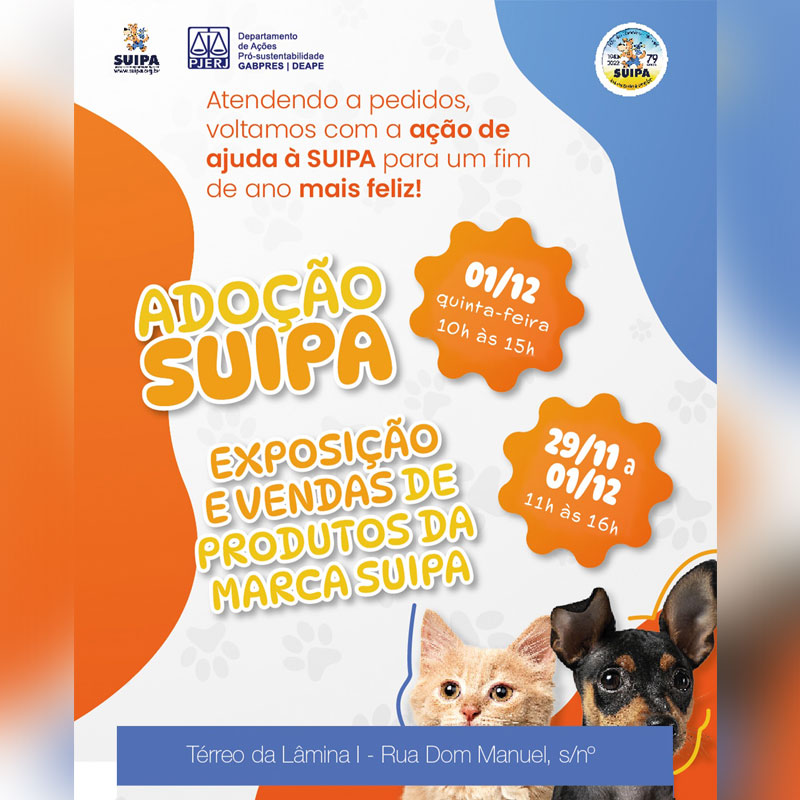 Do dia 29/11 a dia 01/12, o TJRJ convidou os suipanos para estarem presentes em suas instalações, no Centro do Rio de Janeiro, com a lojinha da SUIPA e o “Adote um focinho Carente”.