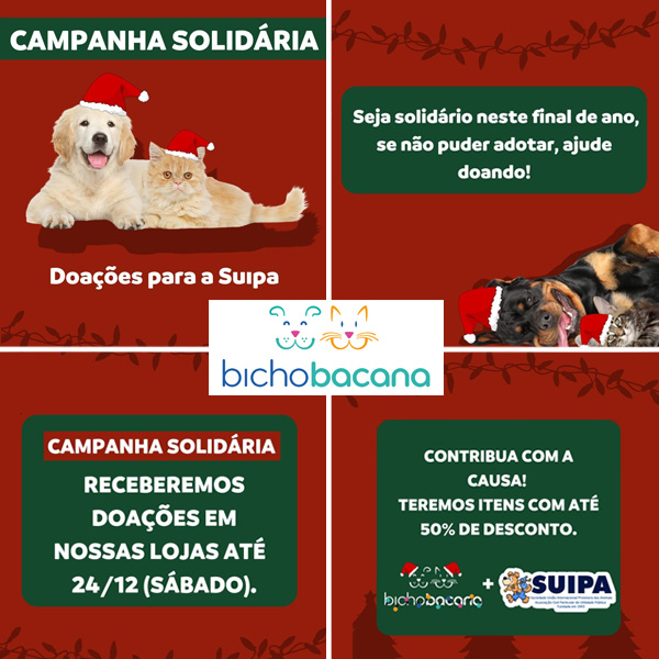 Você pode comprar produtos com até 50% de desconto e doar para o abrigo da SUIPA. BICHO BACANA - 19/12/2022 -SUIPA