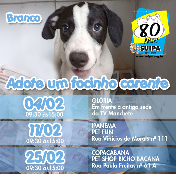 Confiram as datas dos nossos "Adote um Focinho Carente" de Fevereiro: