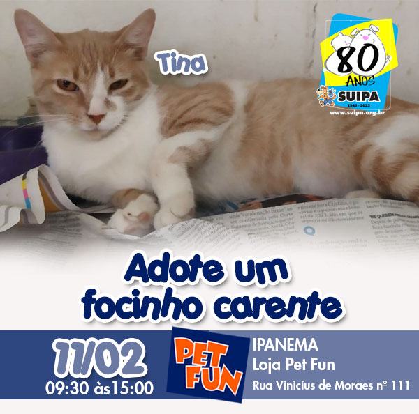Dia 11/02, nosso “Adote um focinho Carente” estará na PET FUN em Ipanema com alguns dos suipanos para adoção e a lojinha da SUIPA.