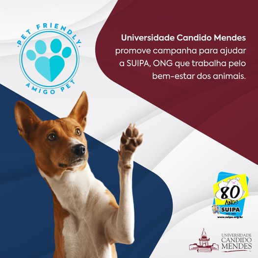 | O pessoal da UCAM uniu forças para ajudar a SUIPA! UCAM - 28/3/2023 -SUIPA O pessoal da UCAM uniu forças para ajudar a SUIPA e está promovendo uma campanha de arrecadação de ração para ajudar aos suipanos. A todos os organizadores e participantes desta ação nossa gratidão! ************************************* Não somos Pet Friendly só no papel. De 06/03 a 28/04, na UCAM Centro, Friburgo, Ipanema, Méier e Tijuca, estamos arrecadando pacotes de ração seca para cães e gatos da Sociedade União Internacional Protetora dos Animais (SUIPA), uma entidade particular, não eutanásia, sem fins lucrativos e de utilidade pública. Em entrevista, Marcelo Mattos Marques, presidente da organização, comentou: “Eu acho importantíssimo o apoio da Universidade Candido Mendes nessa campanha, como já ocorreu anteriormente. São iniciativas como esta que fortalecem o nosso propósito de manter a SUIPA em pleno funcionamento. ... Todos os dias encontramos animais abandonados na porta ou nas proximidades ...”. Participe dessa iniciativa de valor! #candidomendes #diplomadevalor #ucam #emag #suipa #ipanema #doação #doaçãoderação #horaspac - |